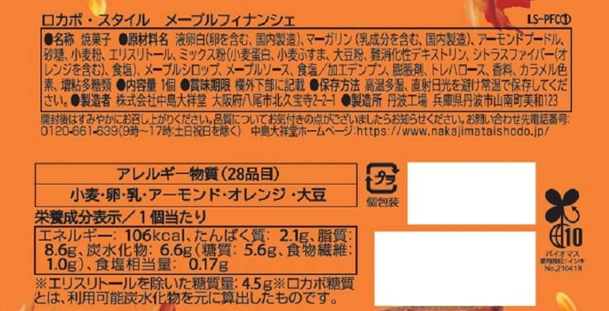 - ・ロカボ・スタイル メープルフィナンシェ 1個入×24袋 (賞味期限:2023/10/20)