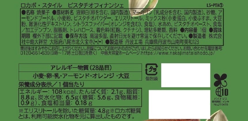 【ロカボ・スタイル ピスタチオフィナンシェ】
