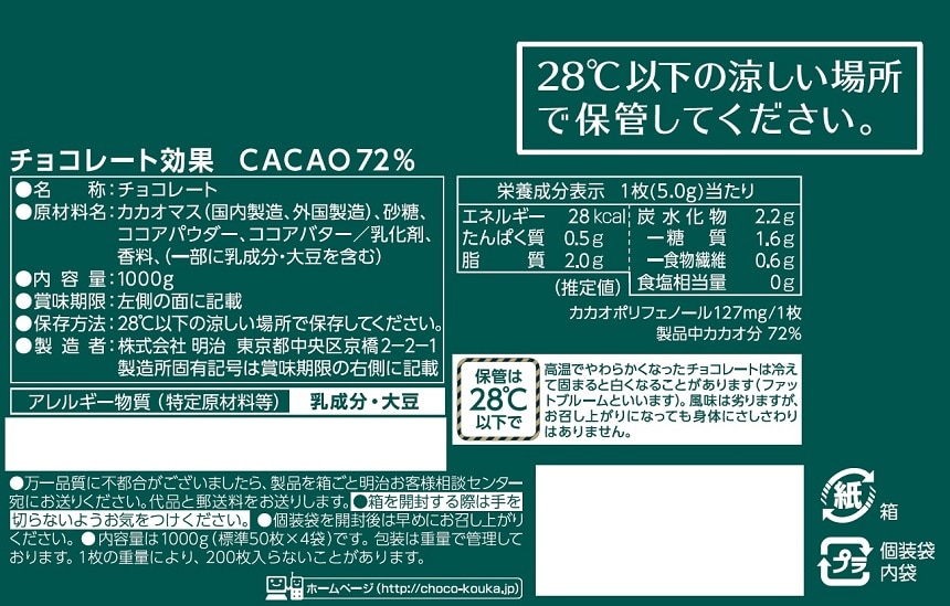 [6箱]明治 チョコレート効果カカオ72%大容量 1000g | 大容量タイプのチョコレート効果