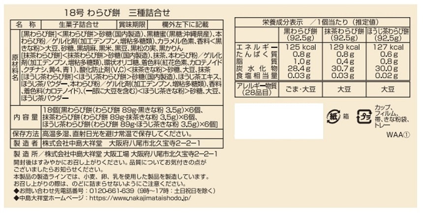 [4箱]中島大祥堂 わらび餅 三種詰合せ 18号 | 『もっちり ぷるり』としたわらび餅。黒糖と抹茶とほうじ茶の3つの美味しさを詰合せました。