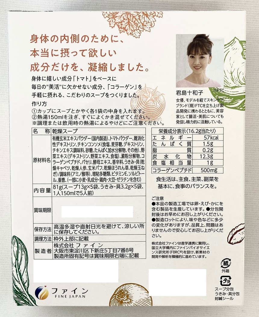 - 君島十和子が毎日飲んでいるスープ 5袋