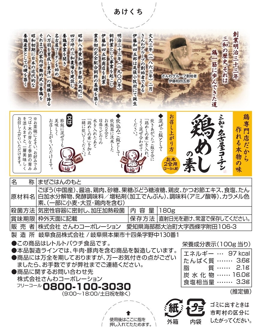 [20個]さんわコーポレーション 三和の名古屋コーチン鶏めしの素 180g | 名古屋コーチン肉を使用した贅沢な鶏めしの素