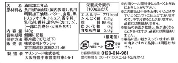 イタリア産黒トリュフオイル、北海道産バターを使用。素材にこだわった商品です。