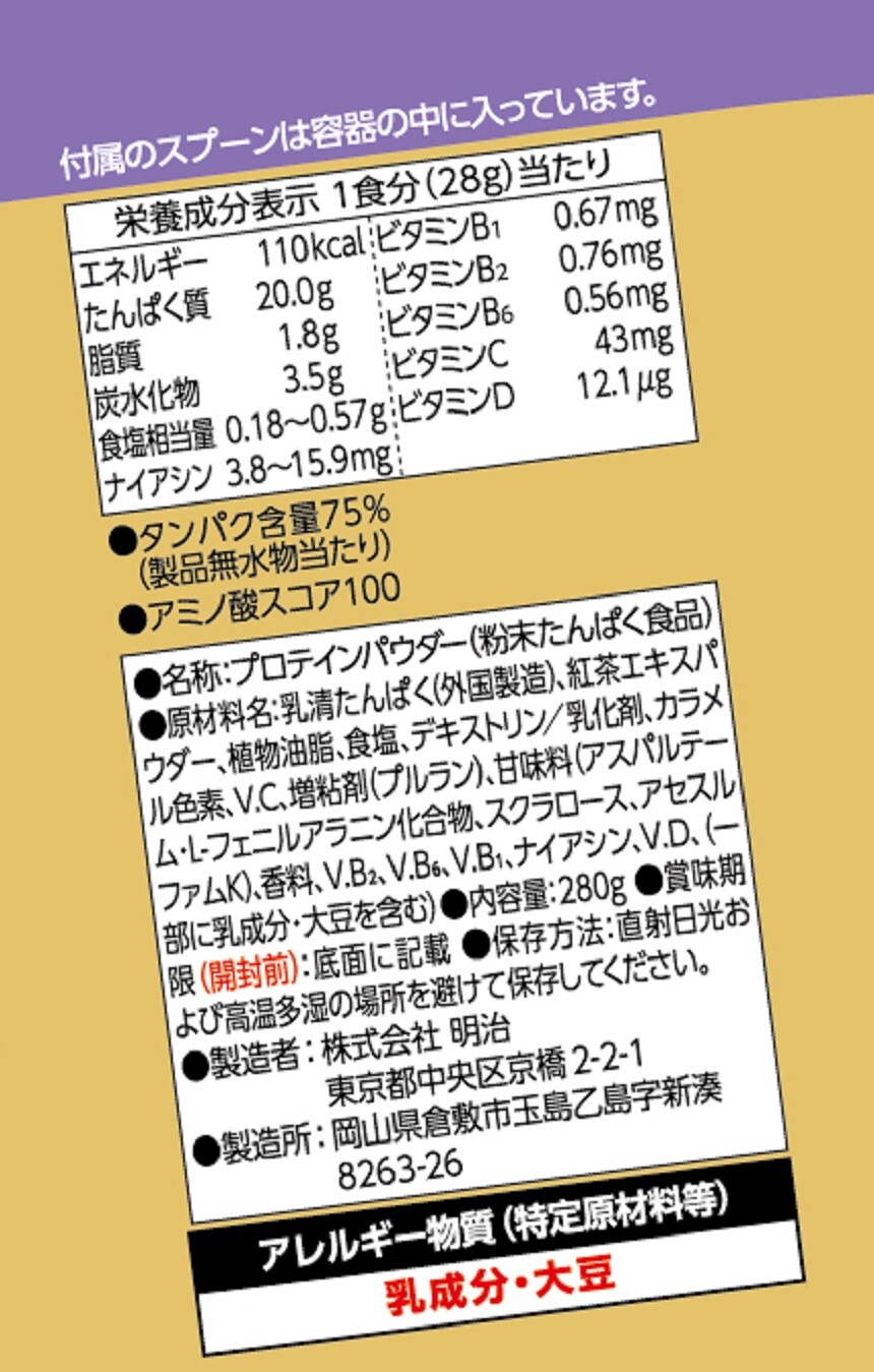 たんぱく原料として、吸収の良い「ホエイプロテイン」を100%使用。