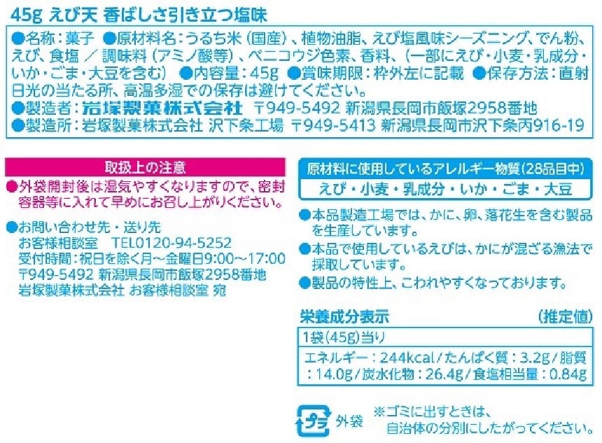 - ・えび天 香ばしさ引き立つ塩味 45g×10袋