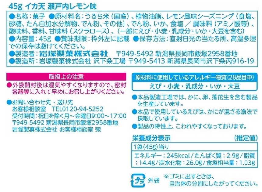 ・イカ天 瀬戸内レモン味 45g×10袋 - 賞味期限