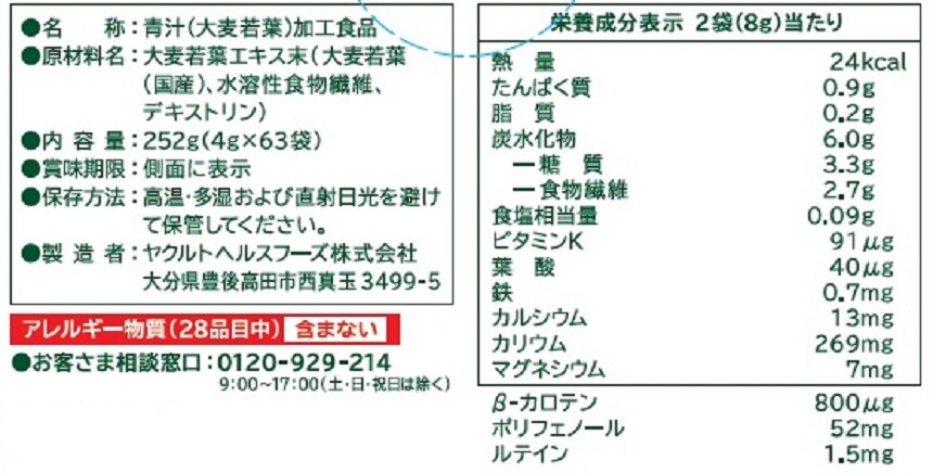 [8個]ヤクルトヘルスフーズ 私の青汁 252g(60+3袋) | こだわりの生葉搾り製法で、毎日おいしく飲める青汁