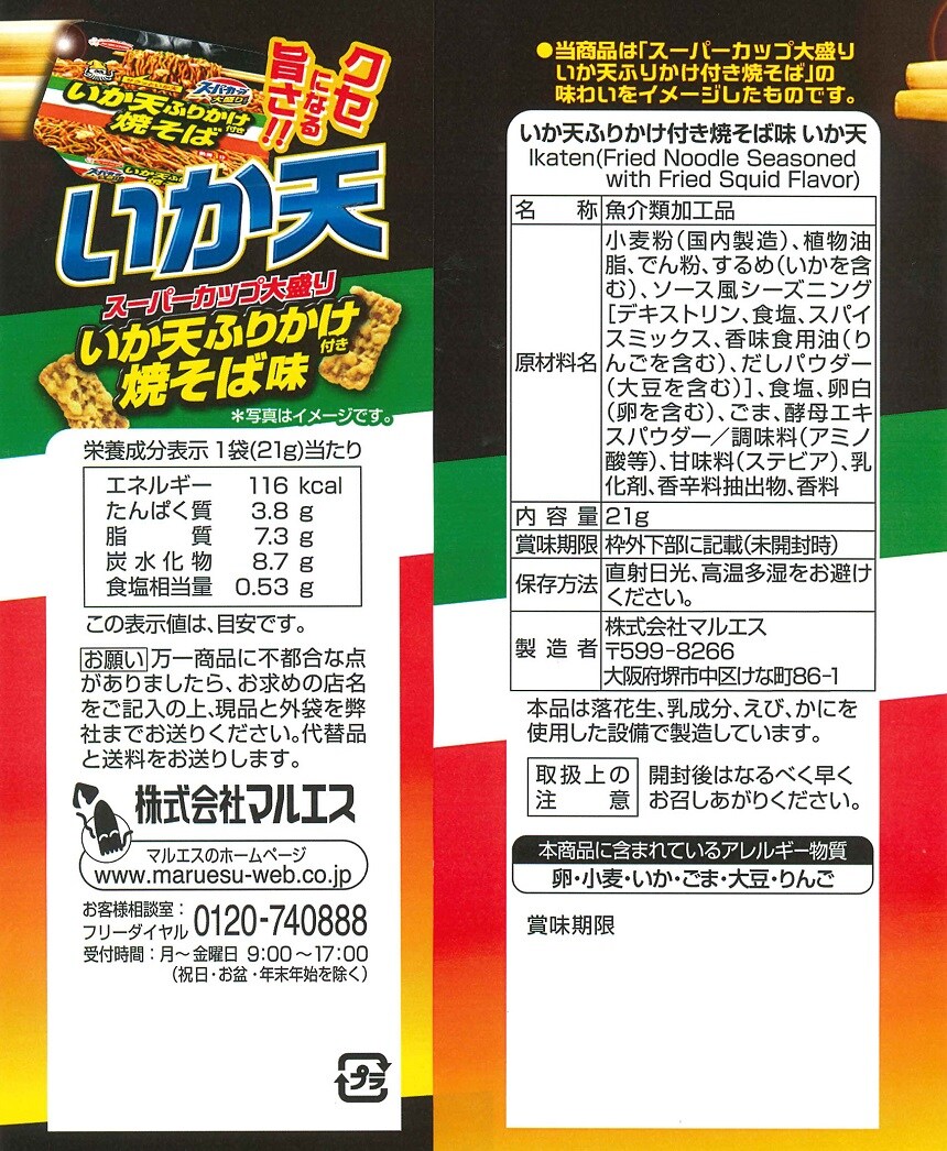 エースコック「スーパーカップ大盛り いか天ふりかけ付き焼きそば」をイメージした焼きそば味に仕上げました。