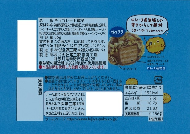 ロレーヌ産岩塩入りの3層バニラクリームと4層ウェファースにミルクチョコレートをかけ、それにコーンフレークをまぶしたザクザクと噛み応えのある、手につかないスナッキーチョコレート。