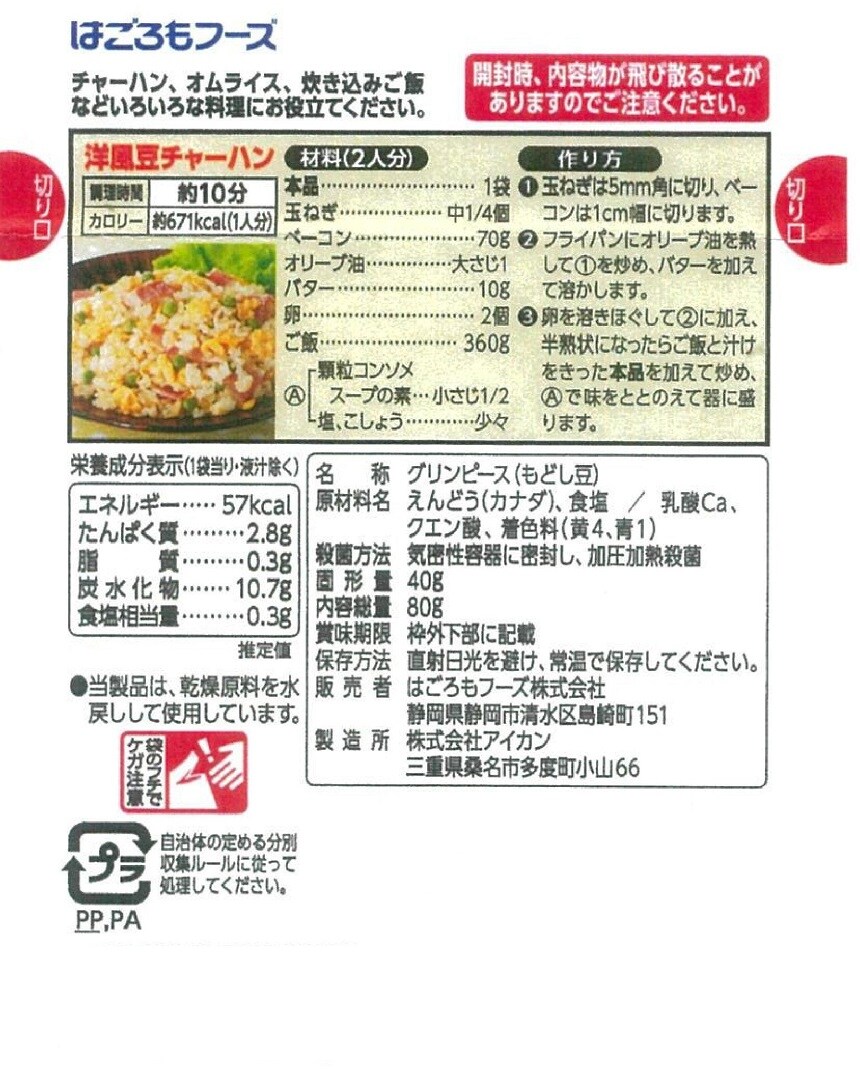 - ホームクッキング グリンピース 固形量40g