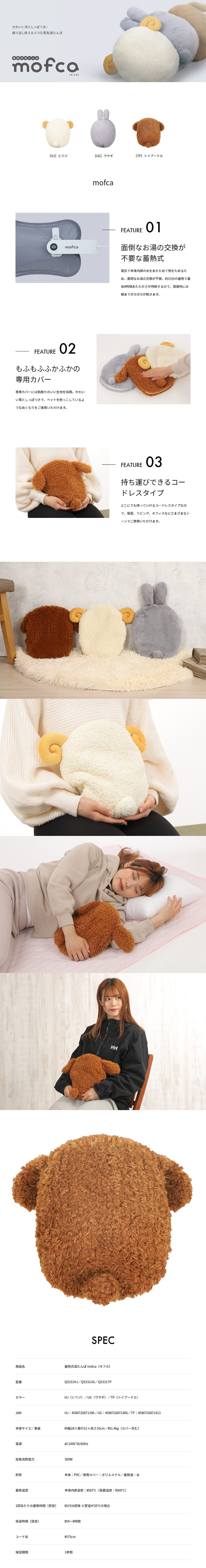 [トイプードル] クワッズ/蓄熱式湯たんぽ 「モフカ」|面倒なお湯の交換が不要!持ち運びできるコードレスタイプ!もふもふふかふかの専用カバー。かわいい耳としっぽつき!繰り返し使えるエコな電気湯たんぽ。