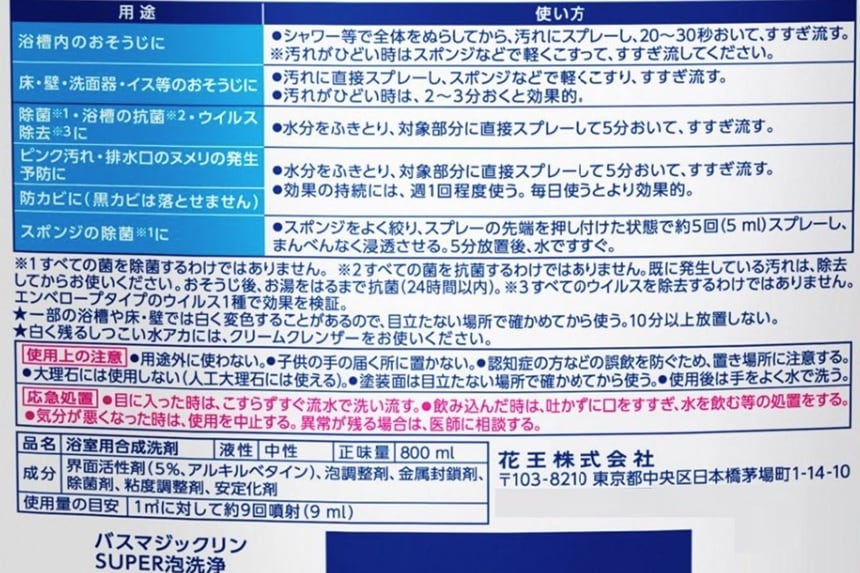 ●必ず「バスマジックリン SUPER泡洗浄 アロマローズの香り」のスプレーボトルにつめかえる。