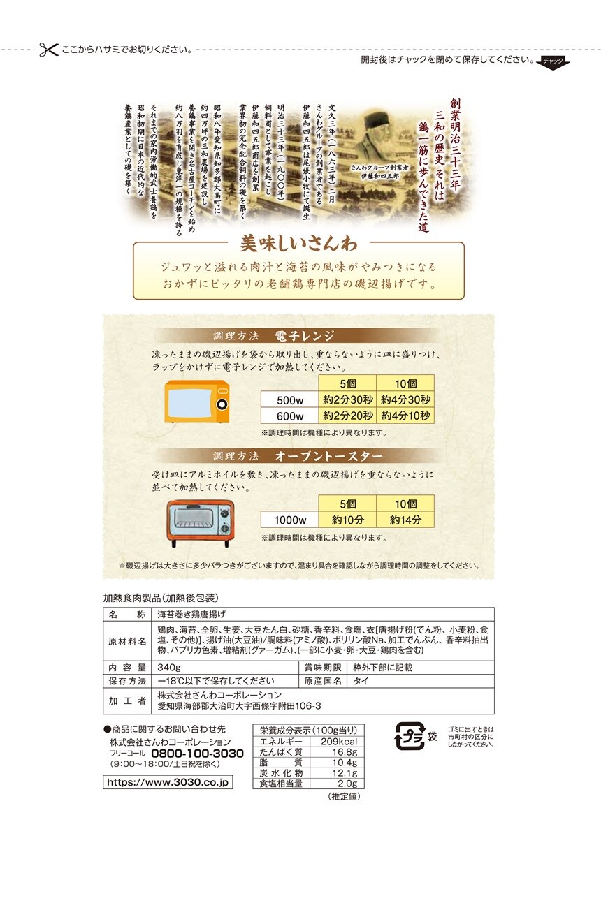 ・老舗鶏専門店 磯辺揚げ 340g×1袋
