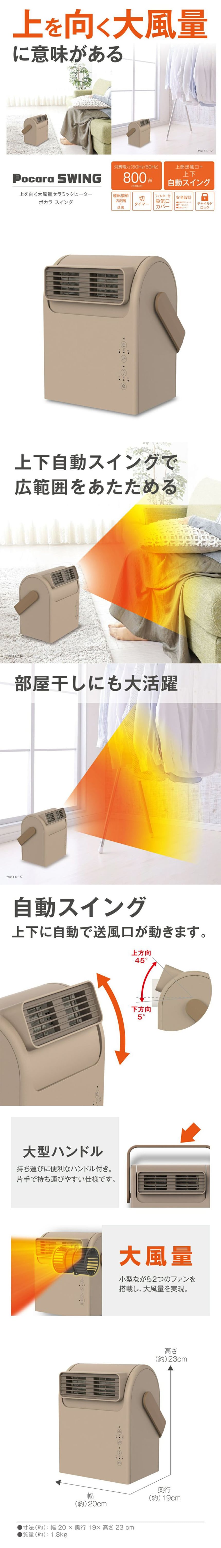商品名:上を向く大風量セラミックヒーター Pocara Swing