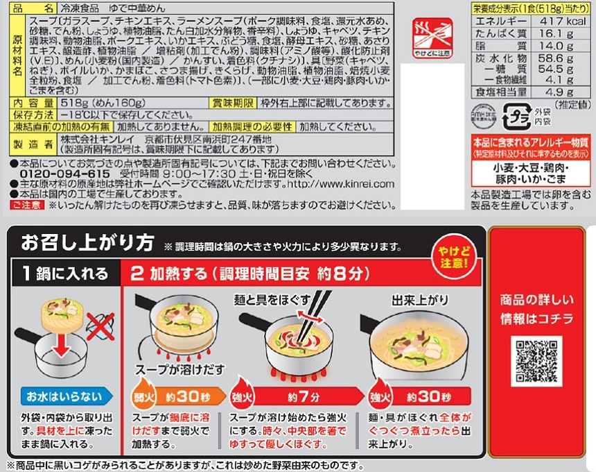 - [冷凍]キンレイ お水がいらない四海樓ちゃんぽん 518g×6個