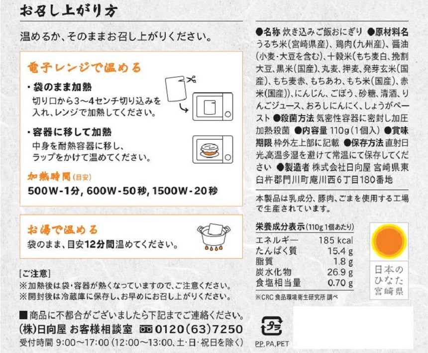 米(宮崎県産)、豚肉(宮崎県産)、醤油(小麦・大豆を含む)、砂糖、清酒、りんごジュース、なたね油、ごま、おろしにんにく、しょうが
