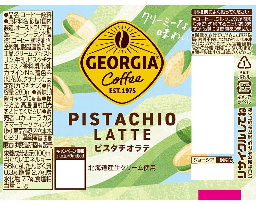 コーヒーブランド「ジョージア」から、ピスタチオフレーバーの見た目も楽しいカラフルなカフェラテ『ジョージア ピスタチオラテ』が新登場。