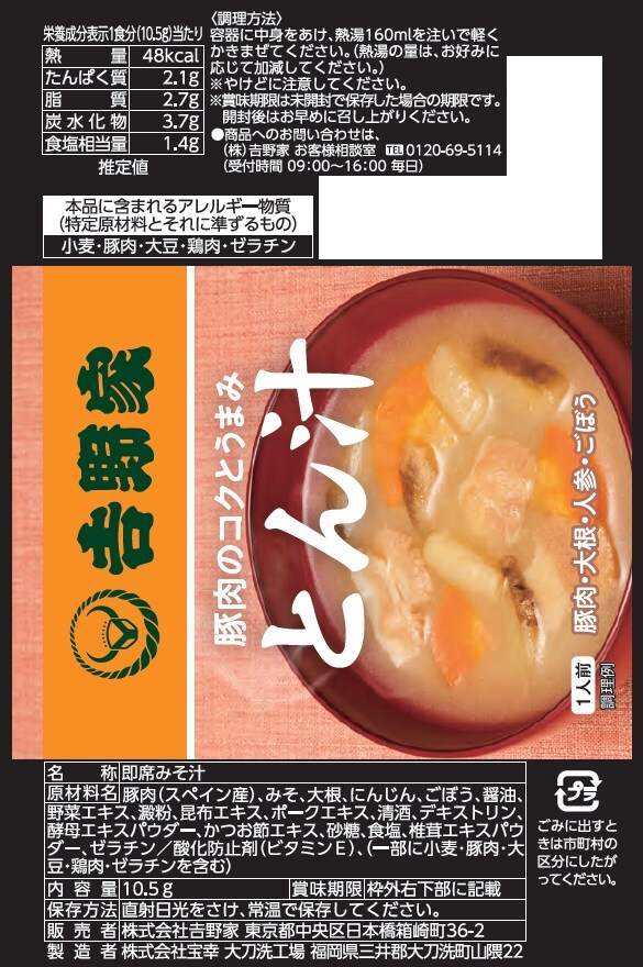 「豚肉、大根、人参、ごぼう」の4種の具材をたっぷり使用し、ご飯のおかずにもなる味わいにしました。