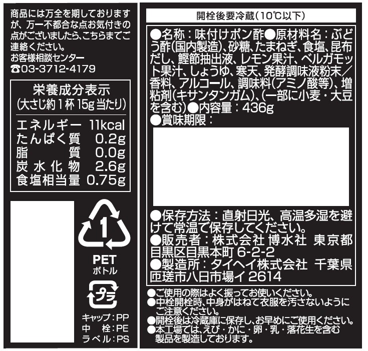 [12本]博水社 ハイサワー おつまみに合うポン酢 436g | お家居酒屋のおつまみの味を引き立て、おいしくする名脇役的高級ポン酢