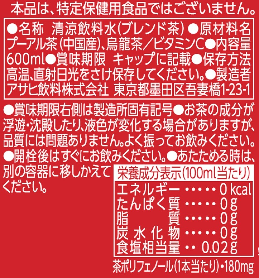 [24本]アサヒ飲料 「アサヒ 食事の脂にこの1本。」 PET 600ml | 脂っこい食事にぴったりの味わい。
