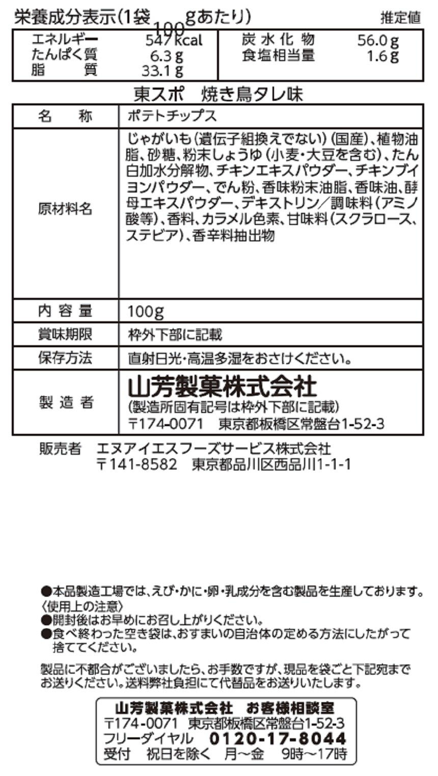 [12袋]エヌアイエスフーズサービス 東スポ ポテトチップス焼き鳥味 100g | 甘辛いタレがクセになる!みんな大好きな「やきとり味」がポテトチップスに登場です!