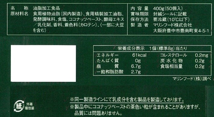 [10個]マリンフード 芳醇植物バター 400g(50個入) | 動物性原料不使用なのに濃厚な「植物バター」