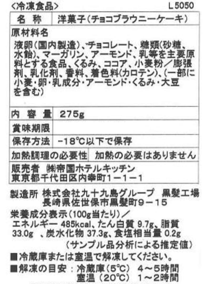 - 帝国ホテルキッチン チョコブラウニーケーキ 275g