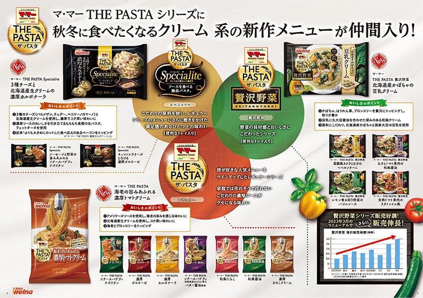 [冷凍]日清製粉ウェルナ マ・マー THE PASTA 贅沢野菜北海道産かぼちゃの豆乳クリーム 230g×12個 | 贅沢に北海道産かぼちゃをトッピングした深みのある和風クリーム