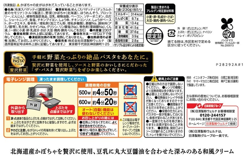 - [冷凍]日清製粉ウェルナ マ・マー THE PASTA 贅沢野菜北海道産かぼちゃの豆乳クリーム 230g×12個