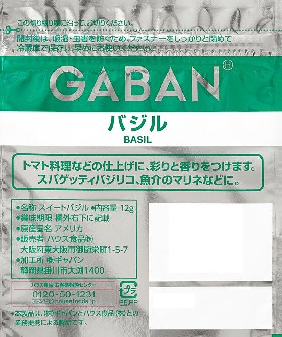 ・ギャバン バジルホール袋 12g×11個(賞味期限:2024/11/30)
