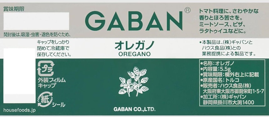 ・ギャバン オレガノ ホール 5.5g×11個(賞味期限:2025/12/31)