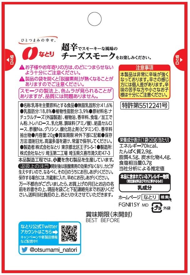 [30袋]なとり 超辛チーズスモーク 20g | 超辛でスモーキーな風味のチーズスモーク
