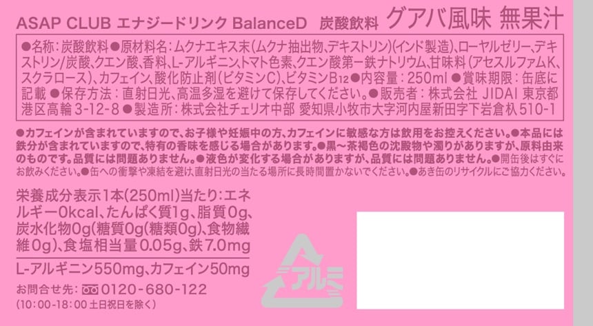 【初回限定】[30本]JIDAI ASAP CLUB エナジードリンク sugar free BalanceD 250ml | ムクナ(L−ドーパ)で脳内覚醒。爽やかなカリフォルニア味
