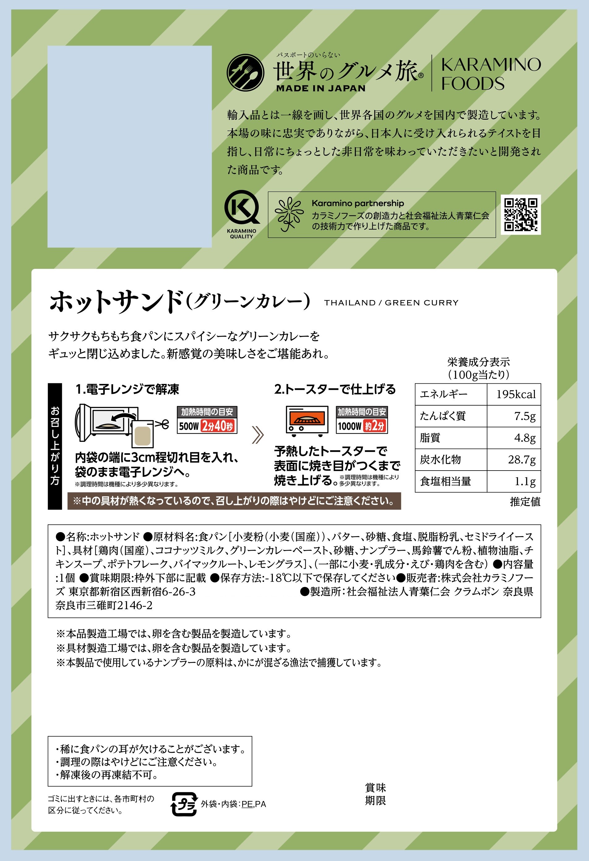 ・ホットサンド(グリーンカレー) 1個×6袋 - 賞味期限