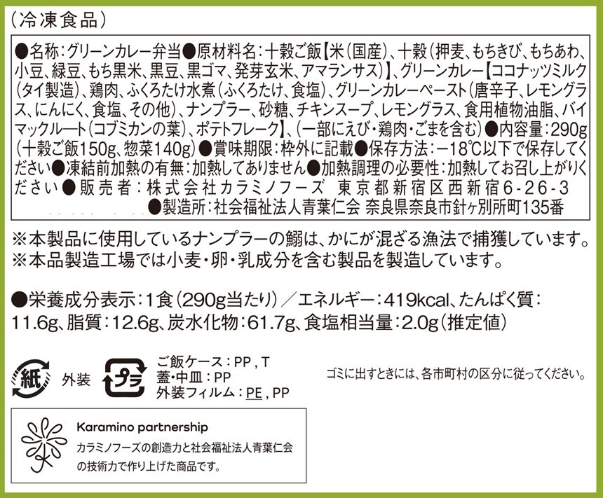 [8個]カラミノフーズ GREENCURRY&RICE グリーンカレー 290g | スパイスの刺激的な辛さとハーブの香り、ココナッツミルクのまろやかさが特徴。