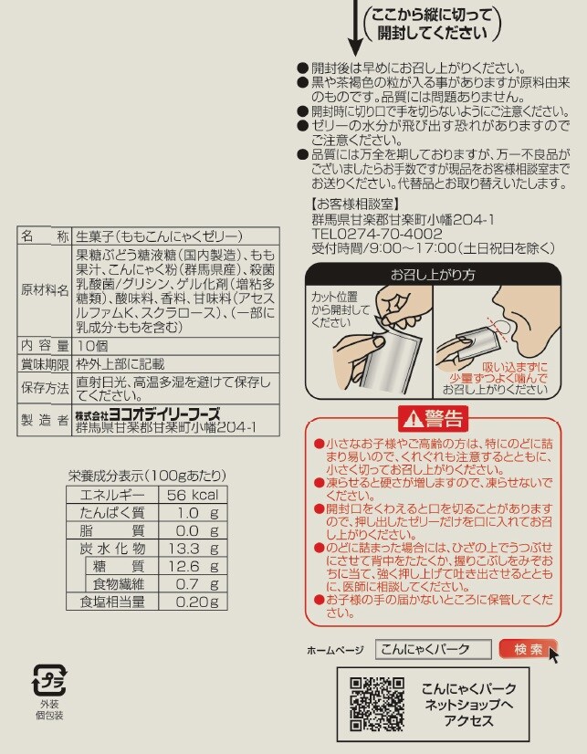 [48袋]ヨコオデイリーフーズ ももこんにゃくゼリー 10個入