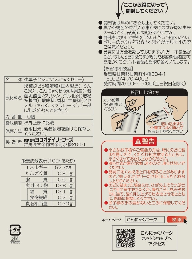 ・りんごこんにゃくゼリー 10個入×12袋 - 賞味期限