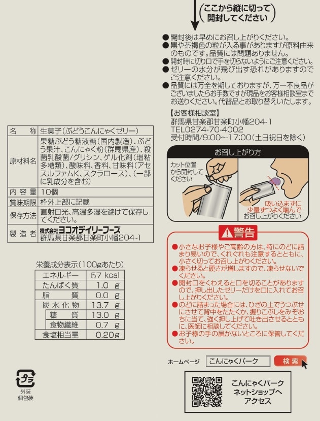 ・ぶどうこんにゃくゼリー 10個入×12袋