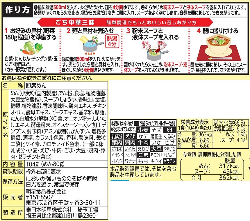 - ・明星 中華三昧 赤坂璃宮 広東風醤油 104g×6個(賞味期限:2024/03/28)