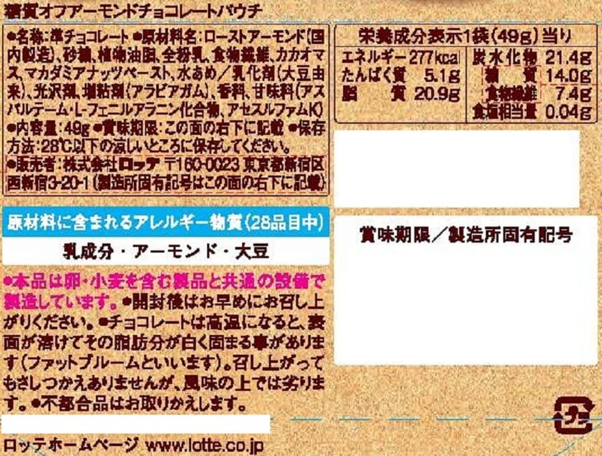 [20袋]ロッテ 糖質オフ アーモンドチョコレート パウチ 49g | ミルクとマカダミアペーストを練り込んだ風味豊かなチョコと、カリッとローストしたアーモンドを楽しめる