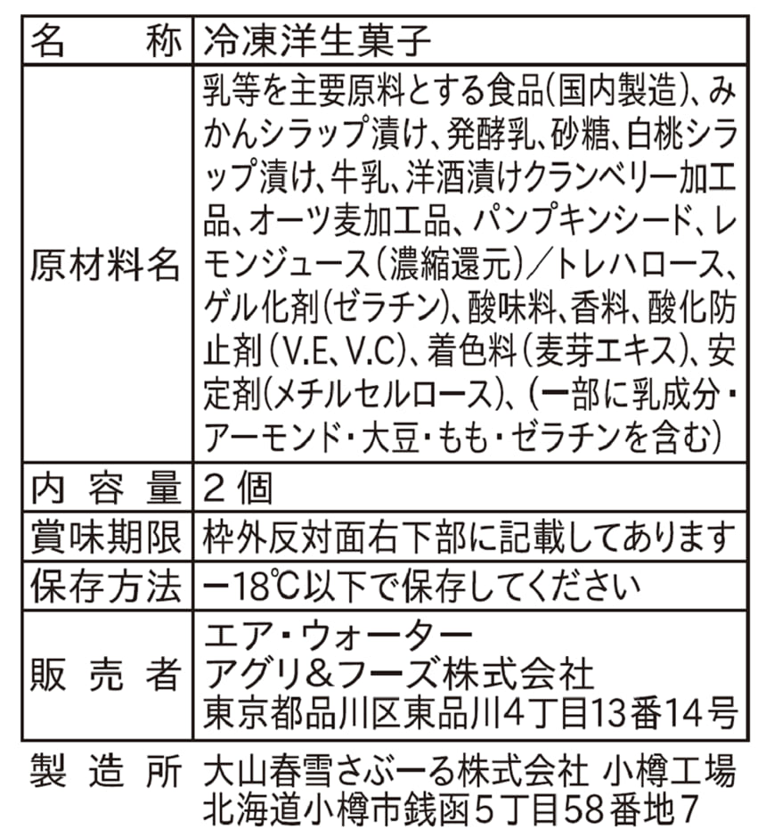 3種のフルーツ(密柑・白桃・クランベリー)とメープル風味のオーツ麦グラノーラが入ったフローズンヨーグルトケーキです。