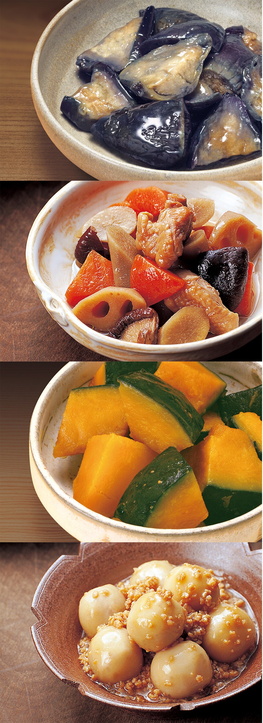 - [冷凍]【4種4袋】和惣菜セット(筑前煮/かぼちゃ含め煮/里芋そぼろ煮/なすの揚げびたし)