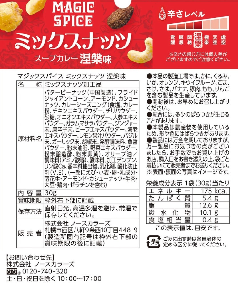 スープカレーの元祖と言われている北海道のスープカレー専門店「マジックスパイス」とのコラボしたミックスナッツです。