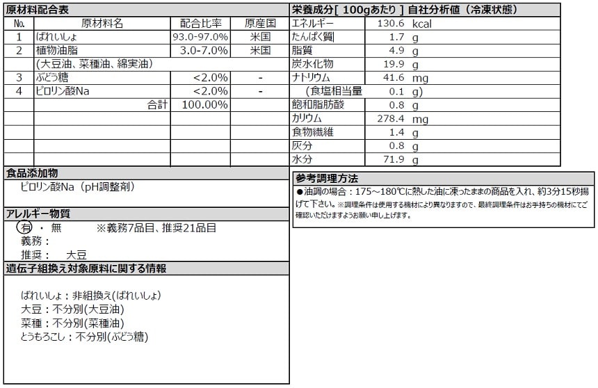 じゃがいも感を感じられる3/8インチ(9.5mm)角にカットした定番商品。