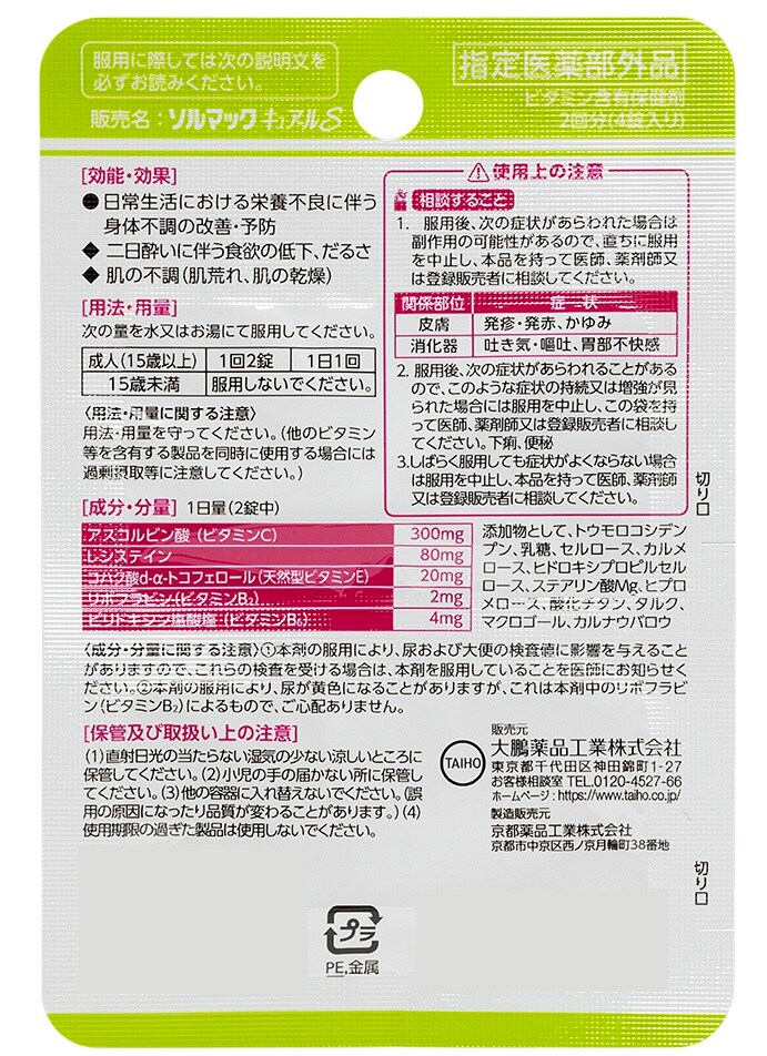 [計40日分]【指定医薬部外品】大鵬薬品工業 ソルマック キュアールS 4錠(2日分)×20袋 | 栄養不良に伴う肌の不調・二日酔いのだるさに。