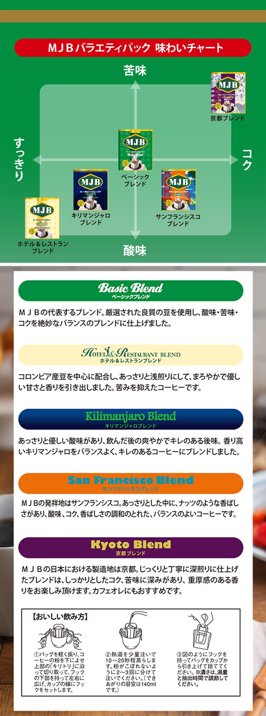 共栄製茶 MJB ドリップコーヒーバラエティパック 25袋×6個 | アラビカ豆を中心にブレンドした5種類の味わい。