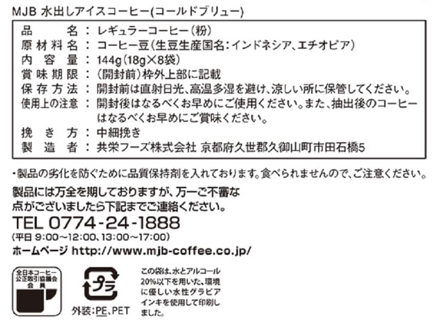 - 共栄製茶 MJB 水出しアイスコーヒー(COLD BREW) 8袋×8個