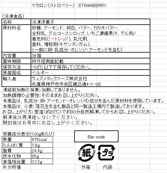- [冷凍]【1箱】ベルギー産冷凍マカロン ストロベリー 36個