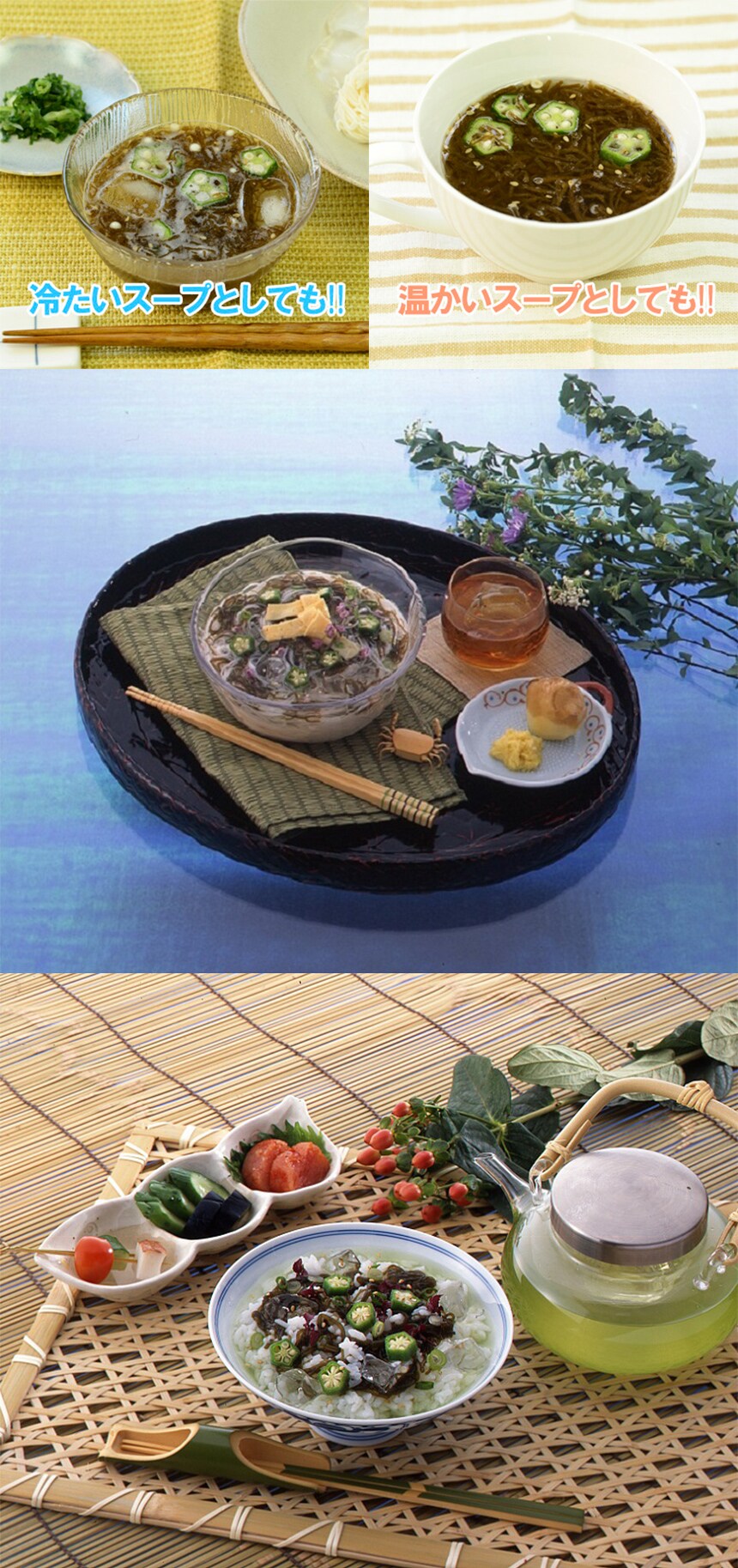 上品な風味の和風だしに夏の定番食材「オクラ」が入った、フリーズドライのもずくスープです。