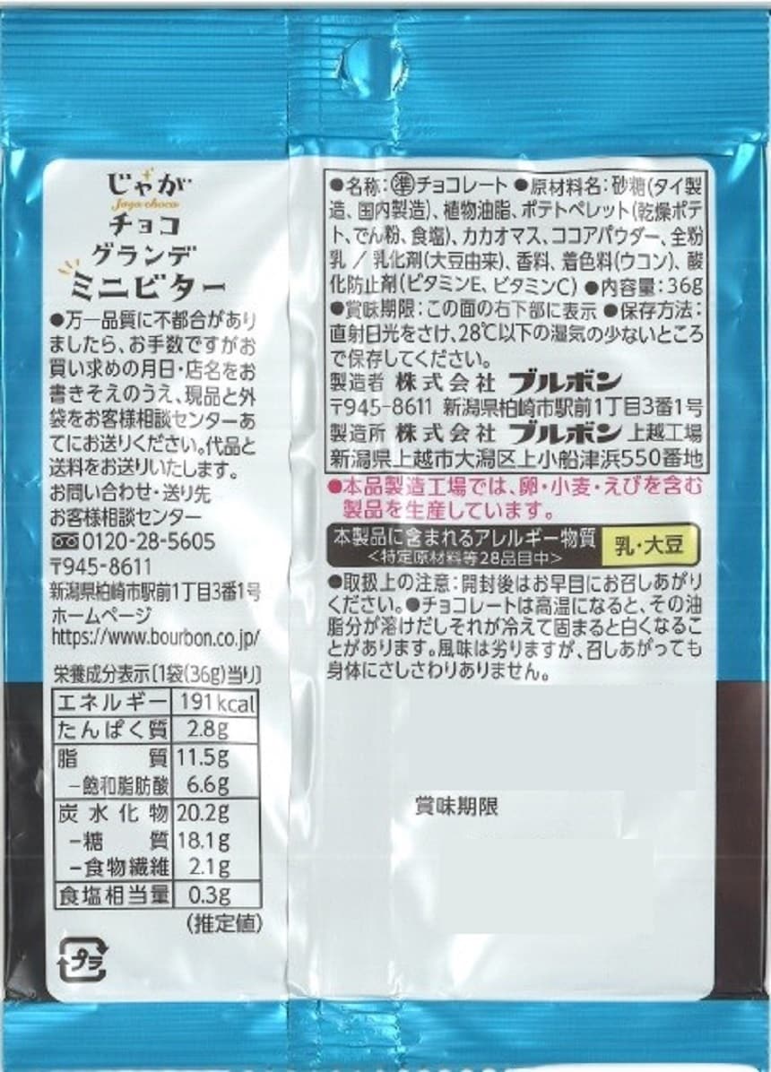[30袋]ブルボン じゃがチョコ グランデ ミニビター 36g | ビターチョコを贅沢にかけたひとくちサイズのポテトスナック